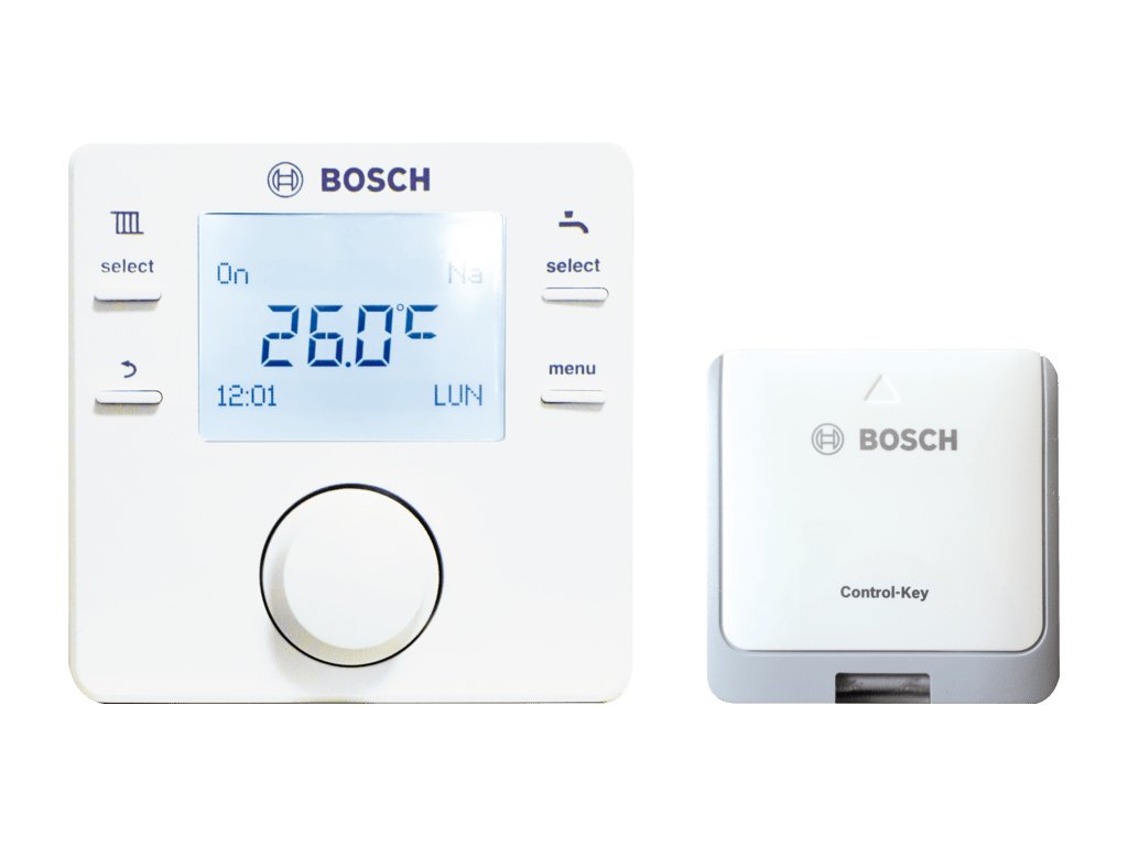 Bezdrôtový priestorový regulátor pre jeden vykurovací okruh a okruh teplej vody pre kotly z rady Condens od Bosch.