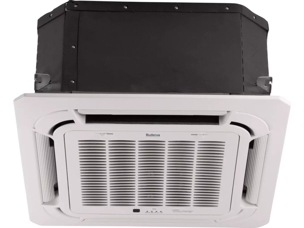 Kazetová vnútorná jednotka Logacool AC166i MS 4CC/4C so 4-cestnými vzduchovými kanálmi pre maximálnu, 360 stupňovú distribúciu vzduchu.